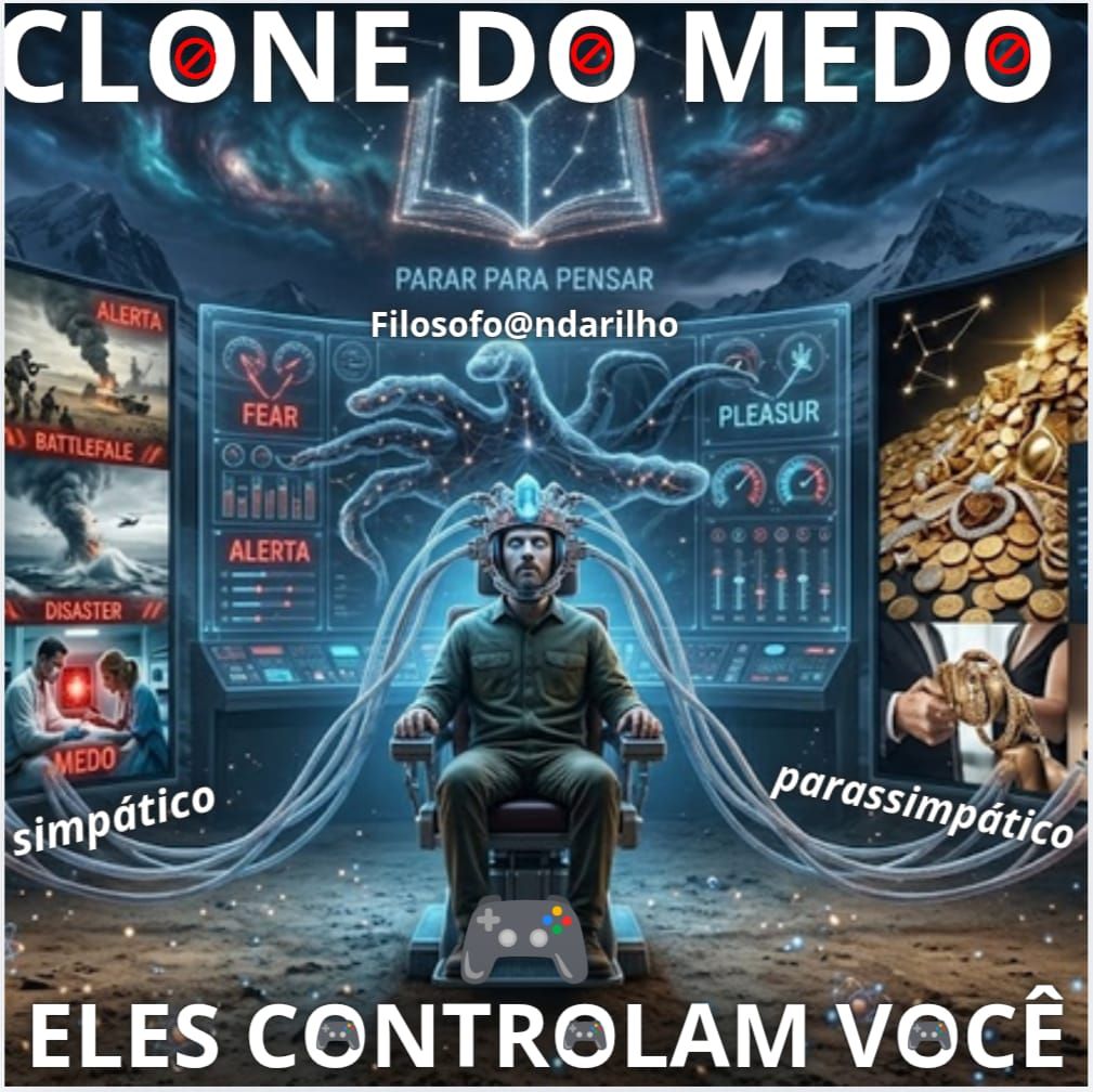 - Do outro lado, a cenoura: Consumismo, dopamina barata, prazeres rápidos, "salvadores" da pátria. Isso liga o seu Sistema Parassimpático, o modo de relaxamento falso.